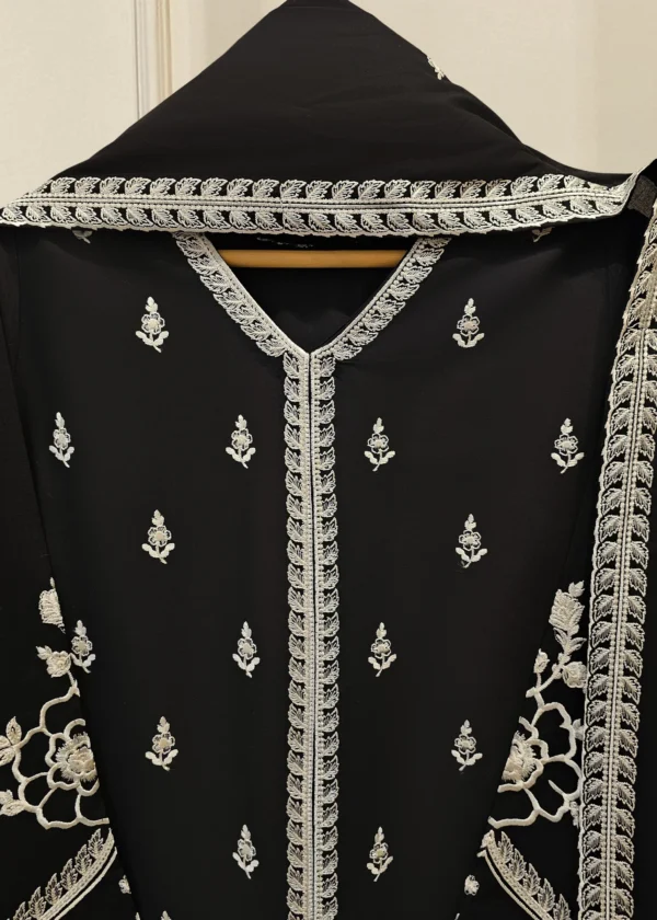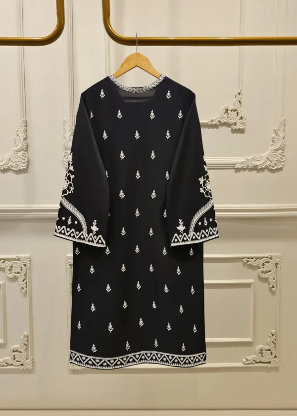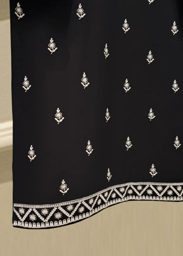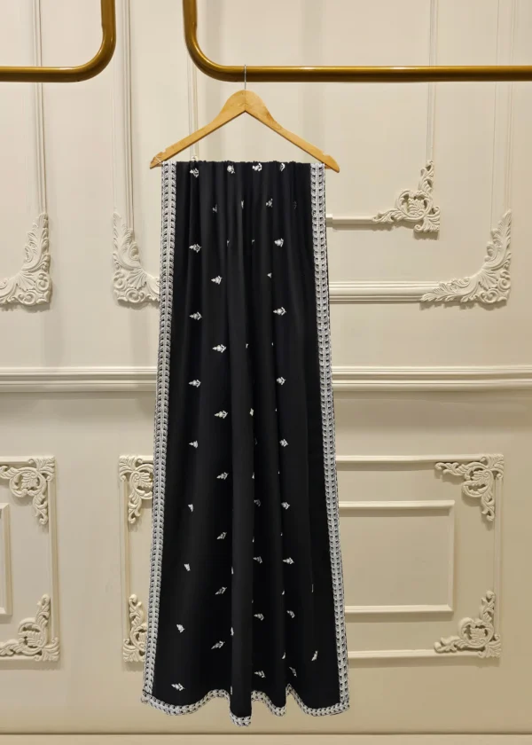Elevate your summer wardrobe with this beautifully crafted black lawn shirt, featuring intricate Chikan Kari work on the sleeves and daman. Designed for timeless elegance, this piece blends breathable lawn fabric with traditional craftsmanship, perfect for festive occasions or casual sophistication. Pair it with pants for a complete look.