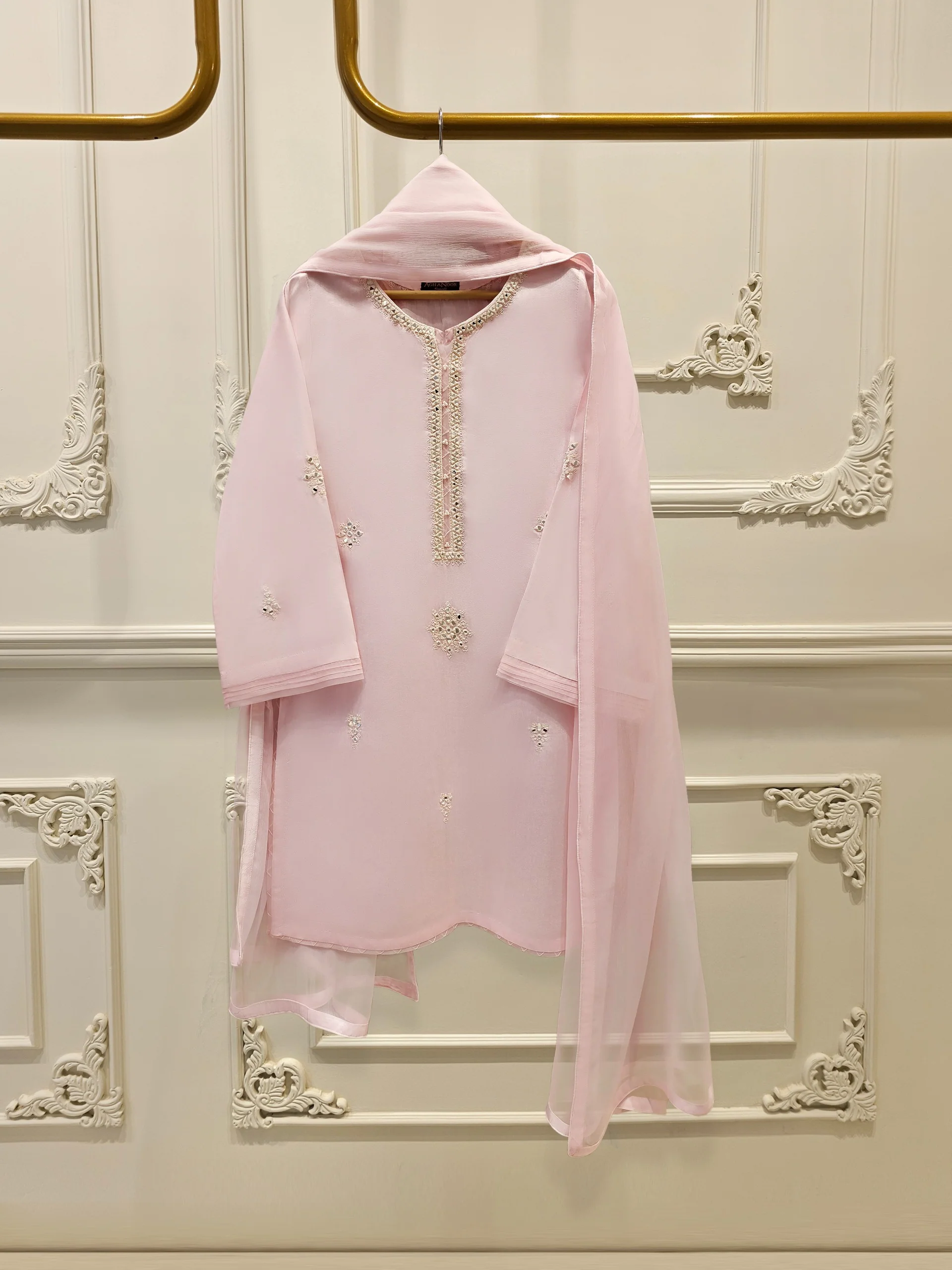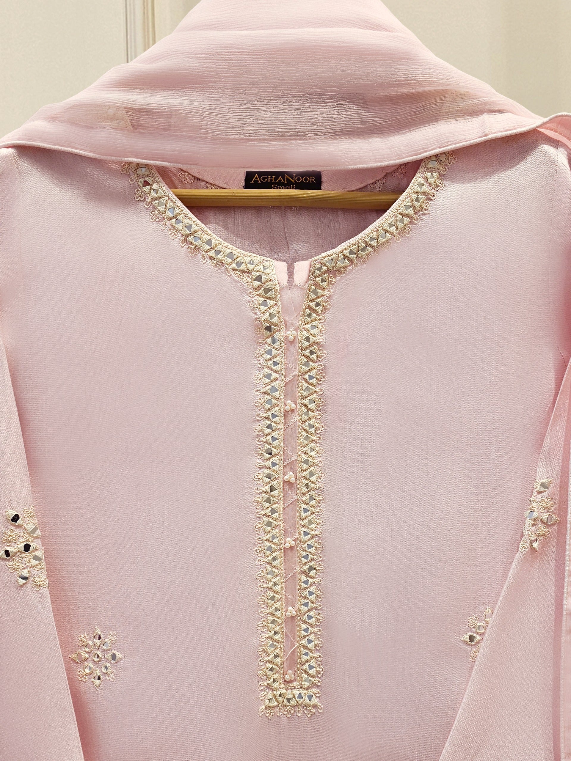3 Piece- Pure Silk Net Embroidered Suit S111749