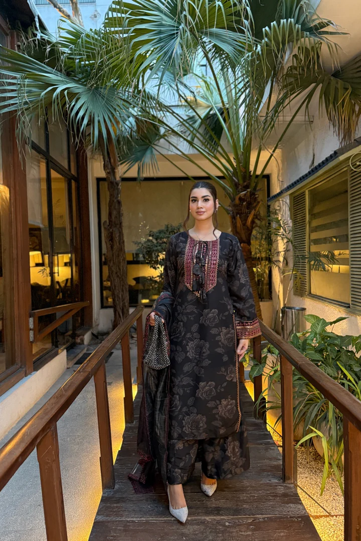 3-Piece 45 lenght shirt Printed Suits with Embroiderd work.