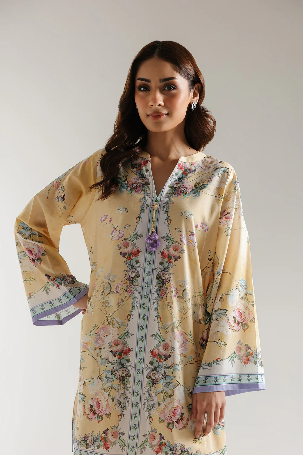 SHIRT – STRAIGHT FIT – BAN NECK WITH V SLIT – FULL SLEEVES – REGULAR LENGTH