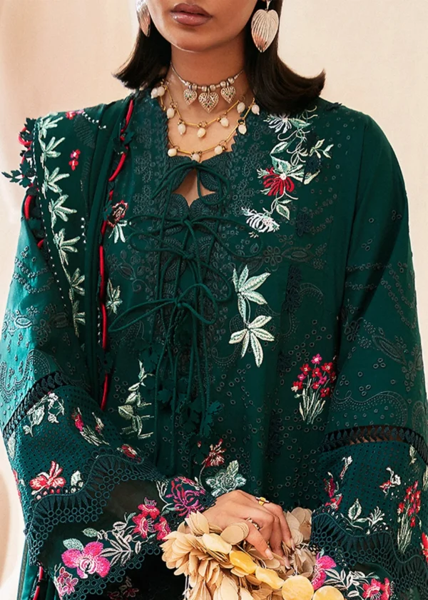 - DESCRIPTION: You are the moment – enchanting three-piece set, beautifully blending traditional craftsmanship with contemporary finesse. This outfit showcases an eye-catching teal lawn embroidered shirt. embellished with soft pink and pastel accents, where every stitch narrates a tale of transformation and diversity. Complemented by an opulent teal green chiffon dupatta, this ensemble embodies a tribute to life’s cherished moments with a monotone cambric trouser.
