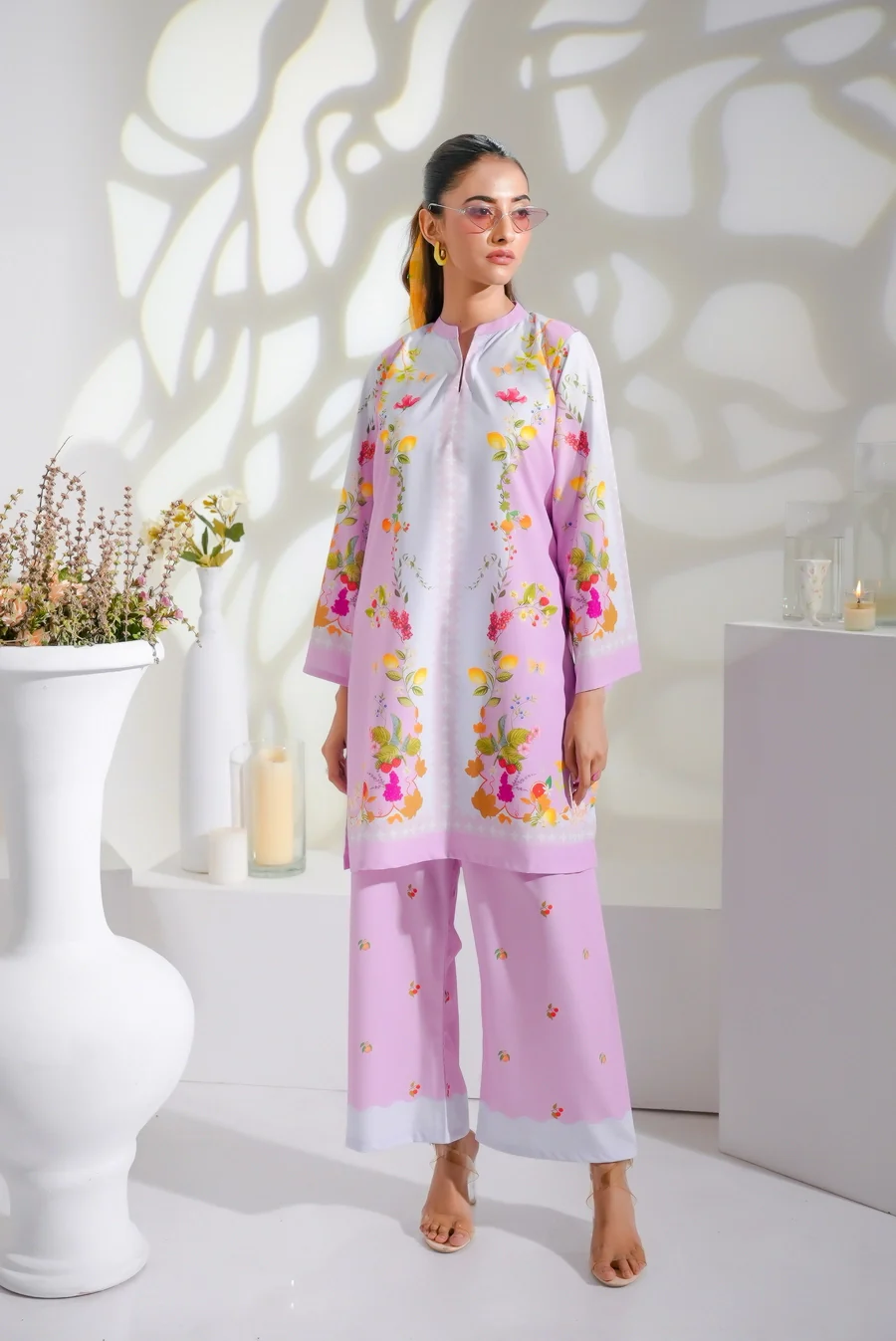 This 2 piece printed-colored co-ord set features luxurious and comfortable fabric and impeccable cuts given to every detail of the article, offering versatility and sophistication for any occasion.